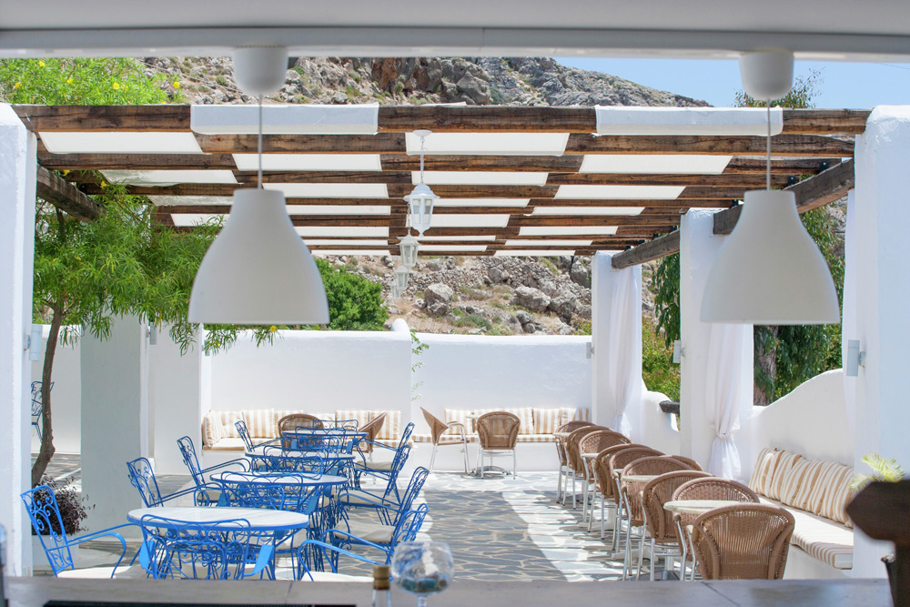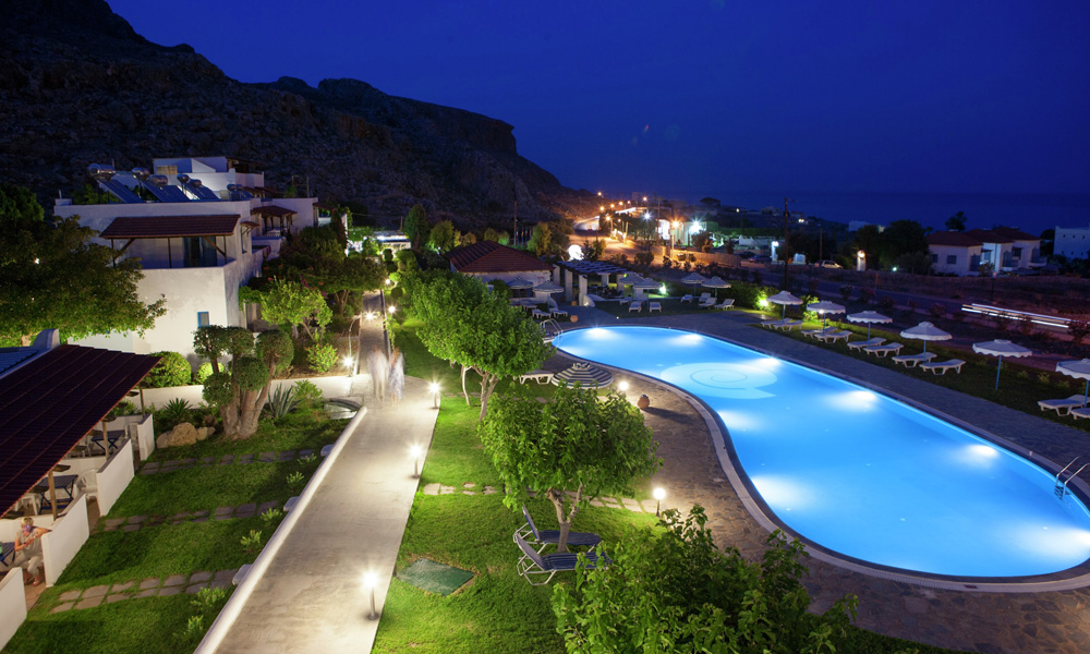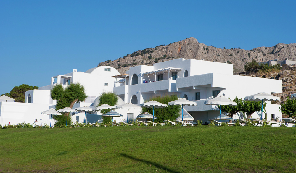 Na vyvýšeníně pouhý 1 km od centra historického městečka Lindos. 50 km od hlavního města Rhodos. Zastávka linkového autobusu cca 50 m.
