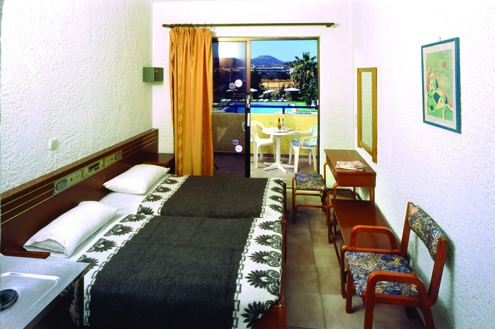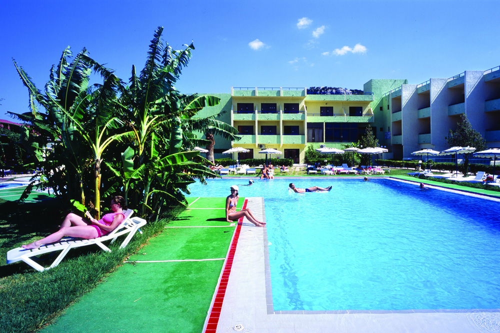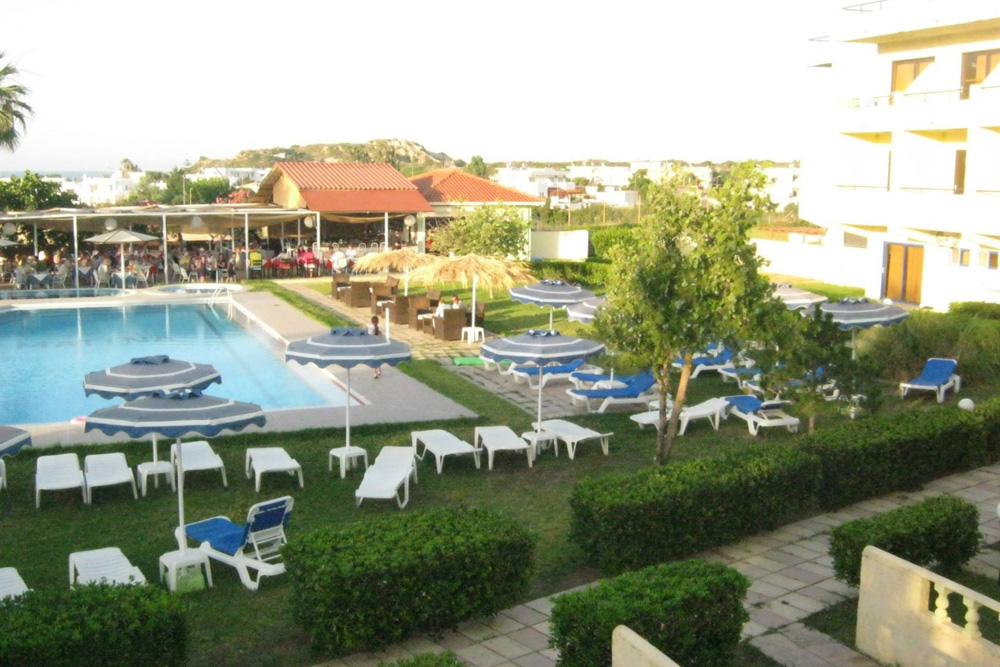 Hotel s krásnou zahradou v klidné části Faliraki asi 1 km od centra letoviska. Hlavní město Rhodos cca 15 km.