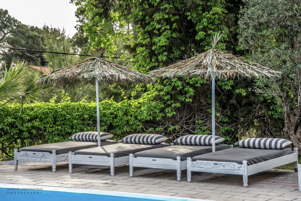 Písečno-oblázková pláž vzdálena pouze 900 m. Lehátka a slunečníky za poplatek.