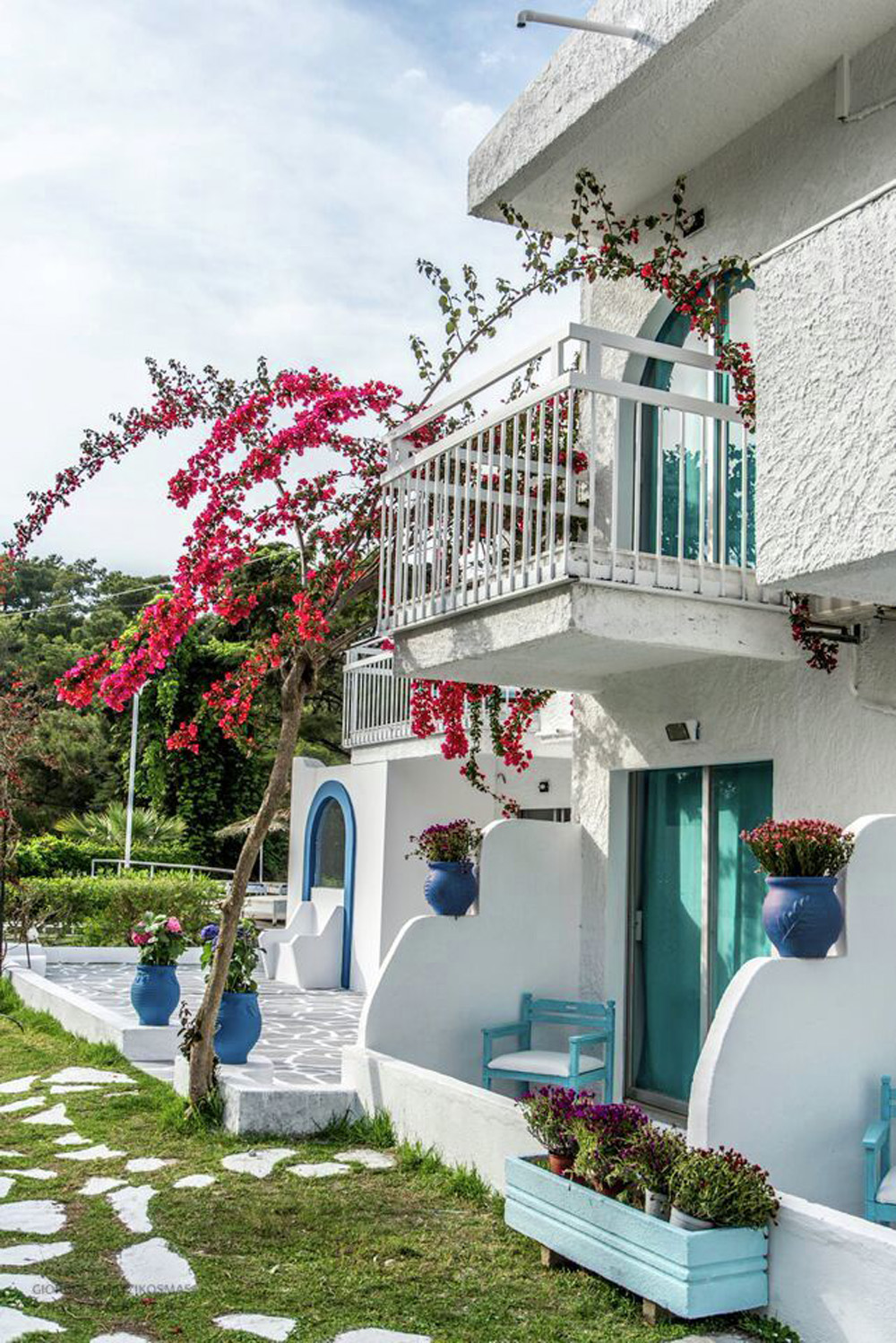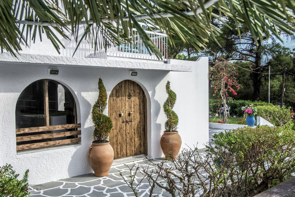 Menší budovy na klidném místě severozápadního pobřeží Rhodosu. Centrum letoviska Ixia s mnoha bary, obchody a tavernami cca 700 m. Historické město Rhodos 8 km, letiště 8 km.