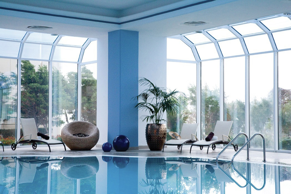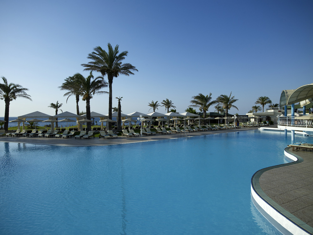 Hlavní budova a 4 vedlejší budovy zahradě, recepce, 2 restaurace s výhledem na moře, bary vč baru na pláži, kadeřnictví, minimarket, obchod se suvenýry, klenotnictví. Velký tropický bazén, dětský bazén, bar u bazénu, terasa na slunění s lehátky a slunečníky zdarma, vnitřní bazén s jacuzzi.