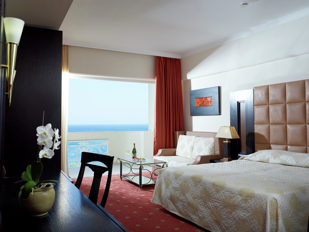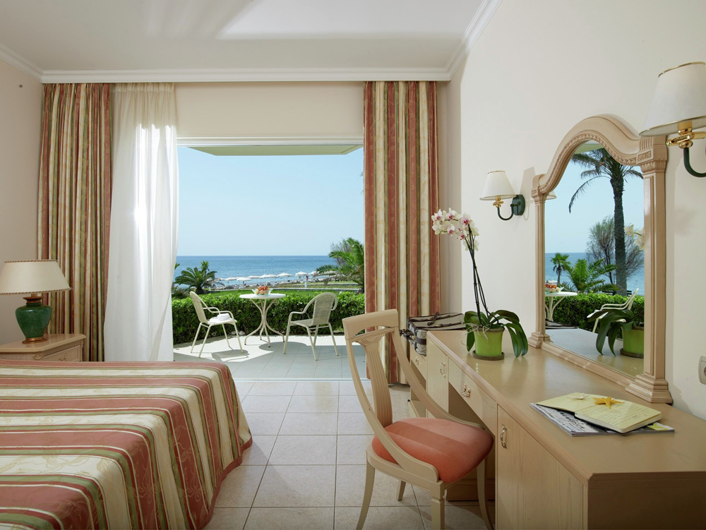 DR: koupelna/WC (vysoušeč vlasů), individuální klimatizace, TV/sat., CD/DVD, telefon, miniledničk. DRSV: viz DR, výhled moře. DRSVS: viz.DR, modernější vybavení, v hlavní budově, výhled moře, set na přípravu kávy& čaje, láhev vody, vína a ovoce v den příletu. FRSV: viz DR, jedna prostornější místnost (cca 35 m2), výhled moře, rozkádací gauč