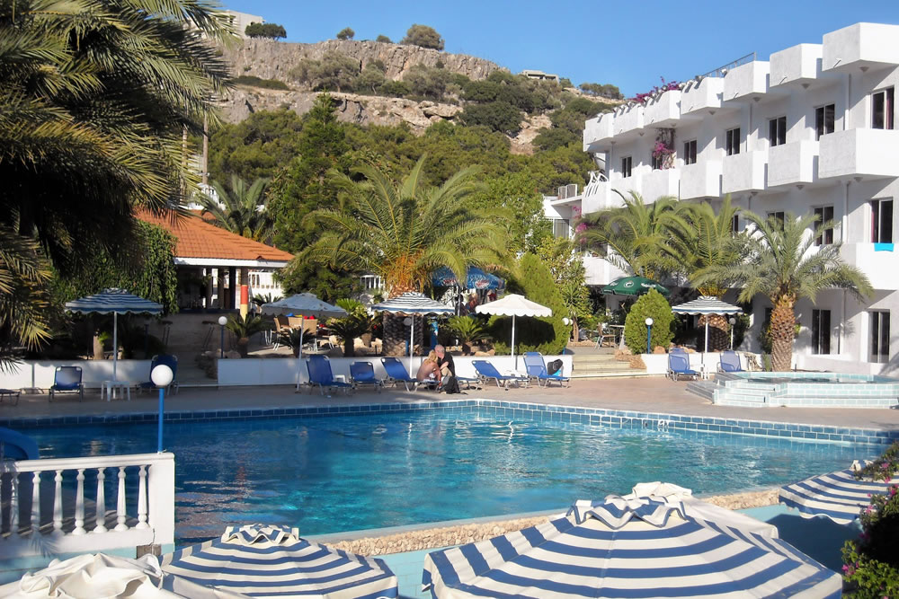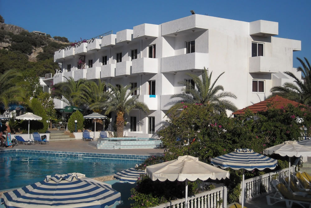 Jednoduchý hotel se nachází v pěkné zahradě v oblasti Pefkos, cca 10 minut chůze od písečné pláže, cca 4 km od města Lindos.