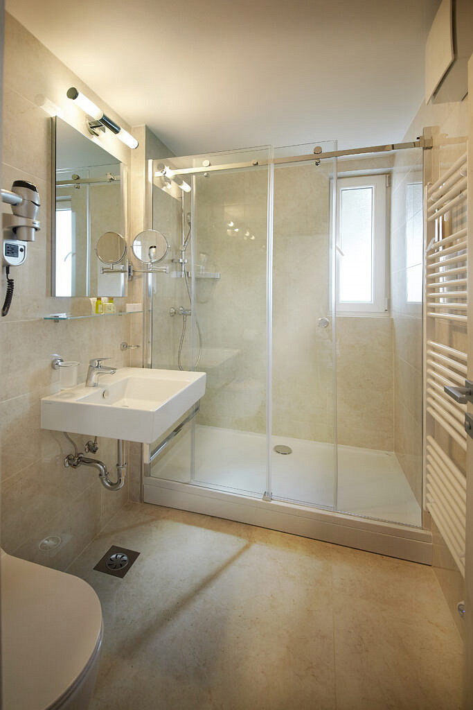 Standard 1 B - oddělená ložnice s manželskou postelí či 2 oddělenými lůžky, sociální zařízení se sprchou, balkon nebo terasa
