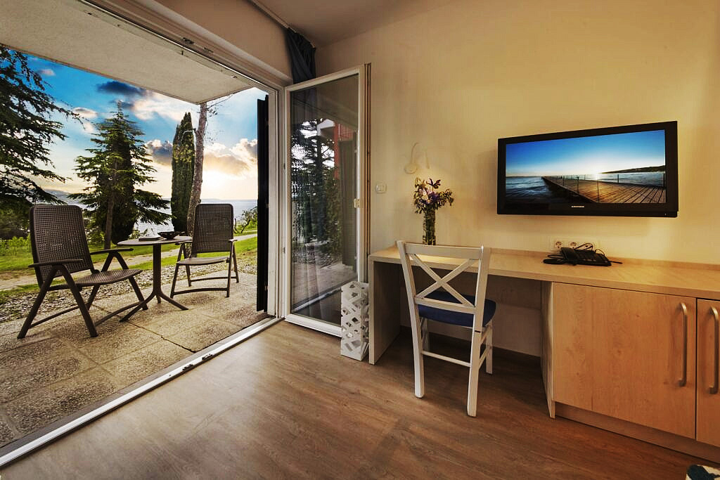 Vily Adria prošly v roce 2021 kompletní rekonstrukcí, leží ve stinném piniovém háji.