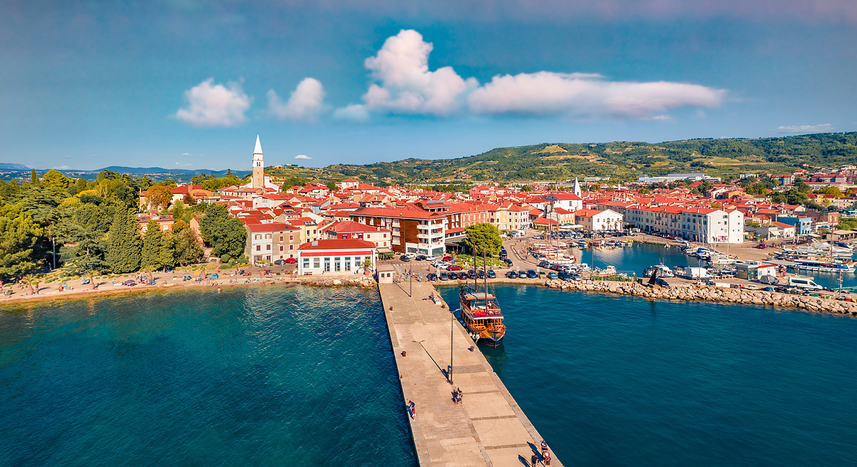 Dnešní Izola je prosluněné městečko rozkládající se na zaobleném výběžku do Jaderského moře. Pokud hledáte sluníčko, moře, toužíte po koupání a plážích bez hlavy na hlavě, ale zároveň také zábavu, je Izola dobrým kompromisem. Izola leží asi 6 kilometrů od Koperu. A není problém projít se z jednoho přístavního města do druhého. Stejně tak můžete své cesty směrovat jižně přes Strunjan a Piran do Portorože. Vzhledem k délce slovinského pobřeží jsou tato přímořská města všechna kousek od sebe. Jako i jiná městečka pobřeží, Izola se velmi podobá italským Benátkám. Není divu, protože benátská nadvláda skončila až v roce 1797, pořád tady na vás dýchá benátská atmosféra. Nikoho rovněž nemůže překvapit, že se tady od nepaměti rozvíjí rybářství. Dnes s ním ještě soupeří turistický ruch a přístav.