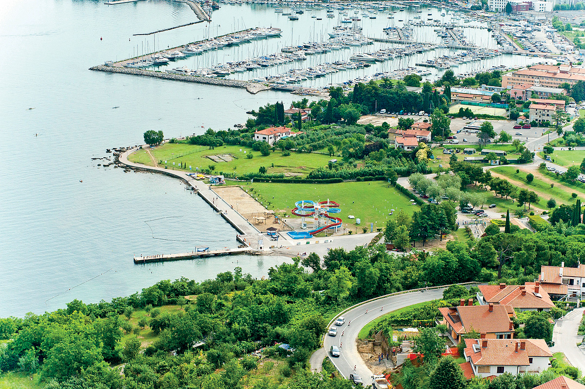 Izola, centrum - 1 km, pláž / oblázková, travnatá a skalnatá, z většiny s betonovými platy - do 200 m, Koper - 8 km, Portorož - 6,5 km