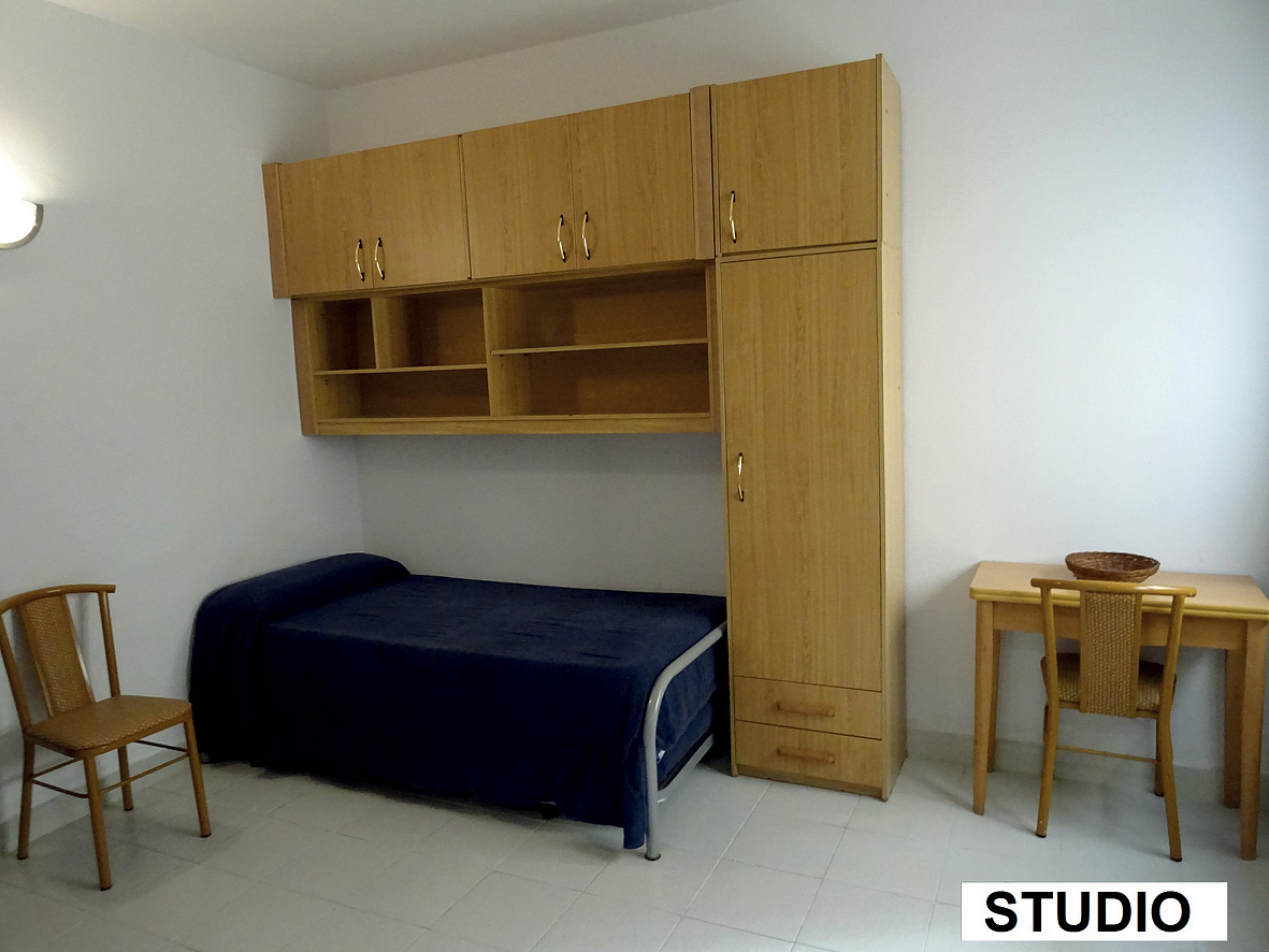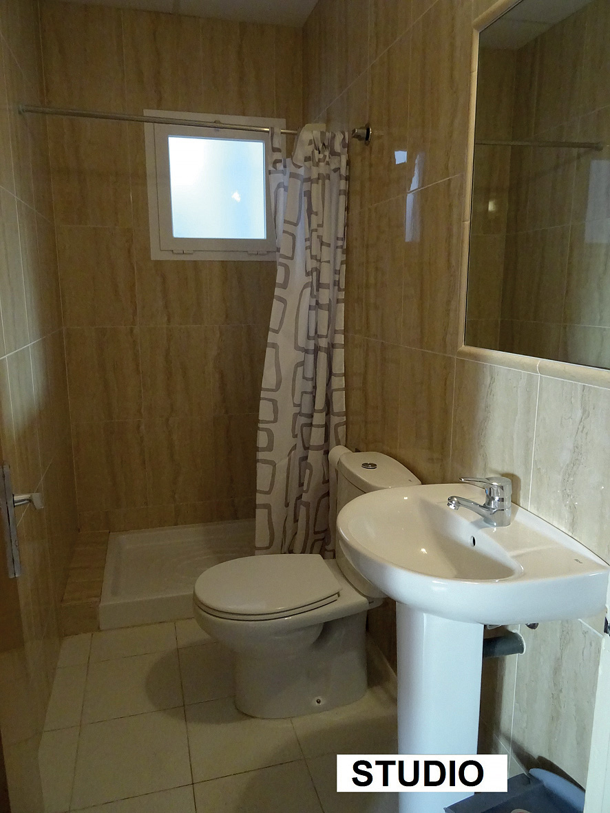 25 m² - obývací pokoj s kuchyňským koutem a manželským lůžkem či 2 samostatnými lůžky či rozkládacím gaučem pro 2 osoby, sociální zařízení se sprchou, výhled do vnitrobloku