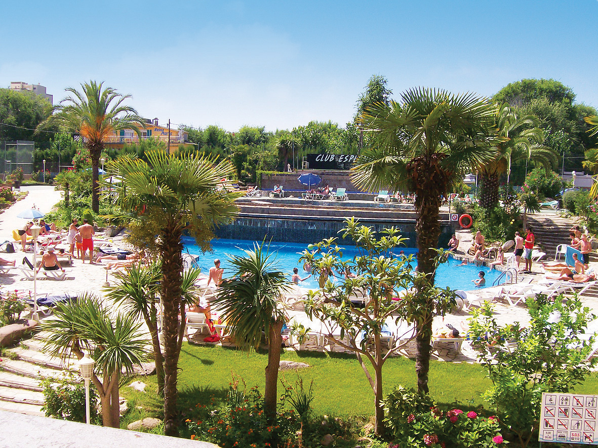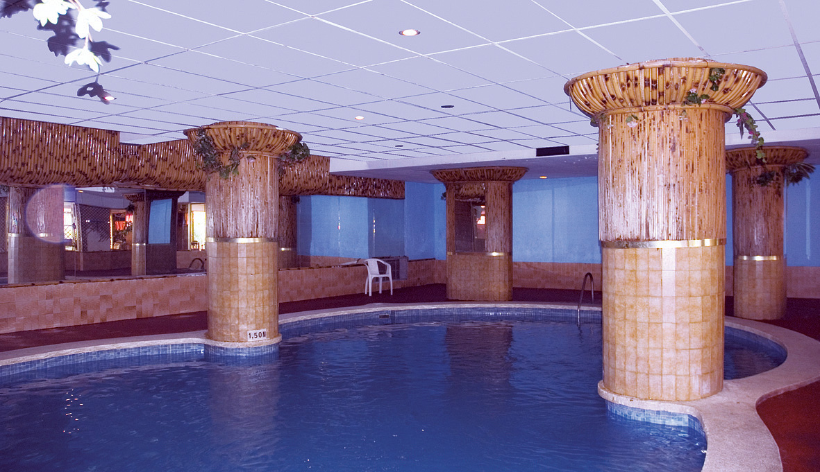 velký bazén s lehátky situovaný v rozlehlé zahradě, dětský bazének, vnitřní klimatizovaný bazén, posilovna, vířivka*, sauna*, tenis*, squash* a biliár*