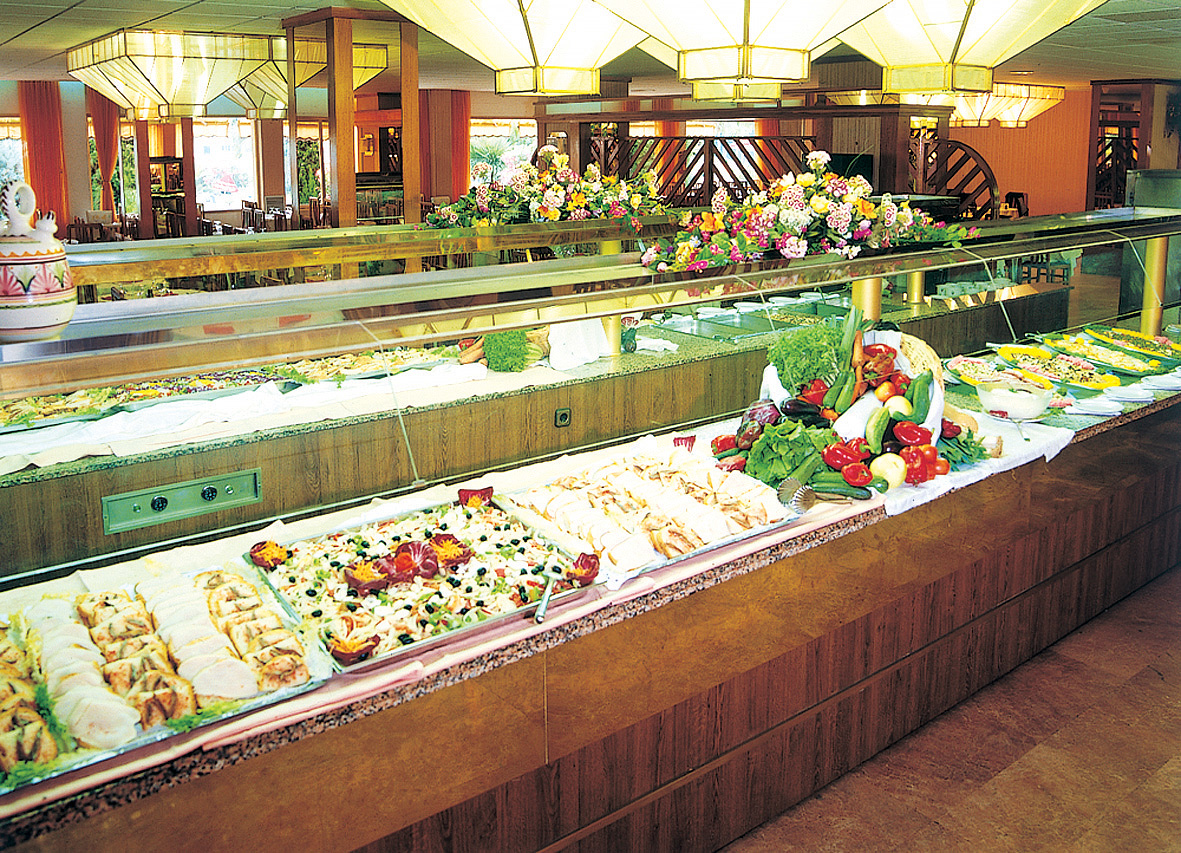 formou bohatého mezinárodního bufetu; nápoje za poplatek