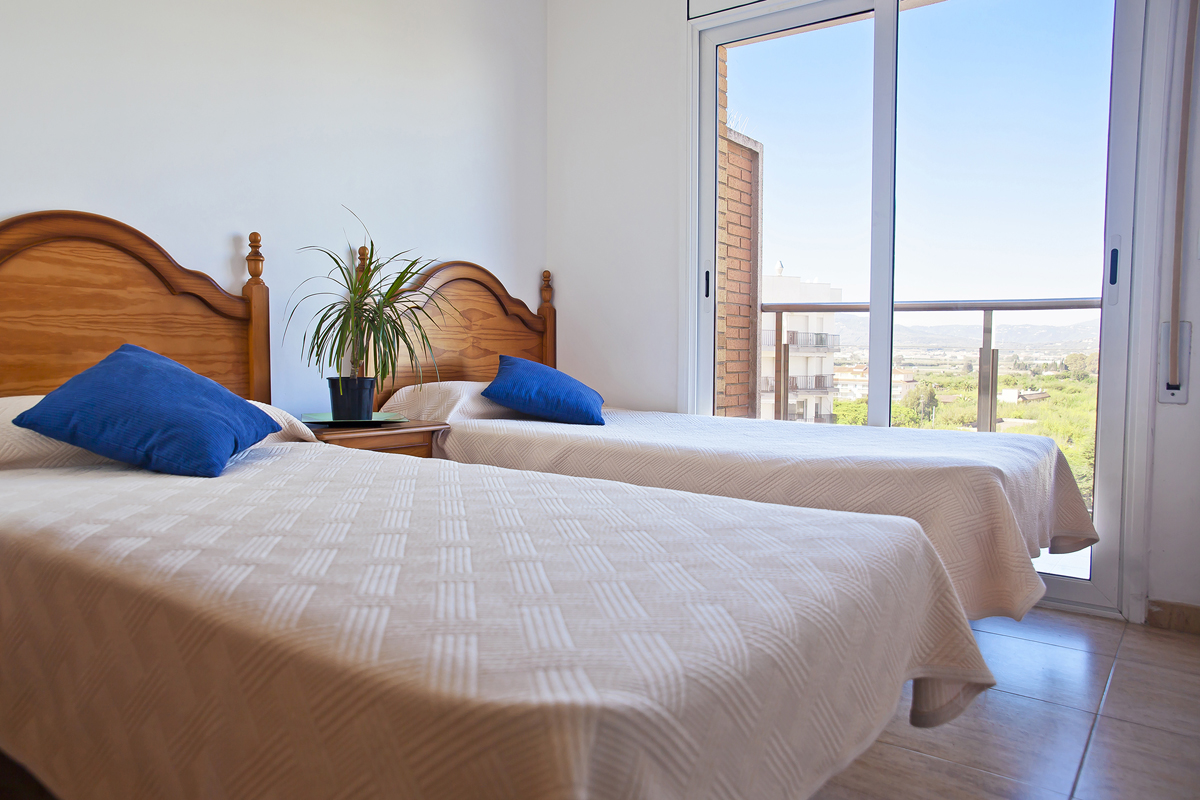 60 m² - obývací pokoj s rozkládacím gaučem (max. 1 dospělá osoba nebo 2 děti do 12 let), dvě dvoulůžkové ložnice (jedna s manželskou postelí, druhá se dvěma samostatnými lůžky), kuchyňský kout, dvě koupelny se sprchou, terasa nebo balkon