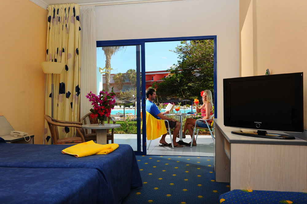 V mírném kopci přímo nad dlouho písečnou pláží Costa Calma. Centrum letoviska s mnoha obchody, bary a restauracemi cca 300m