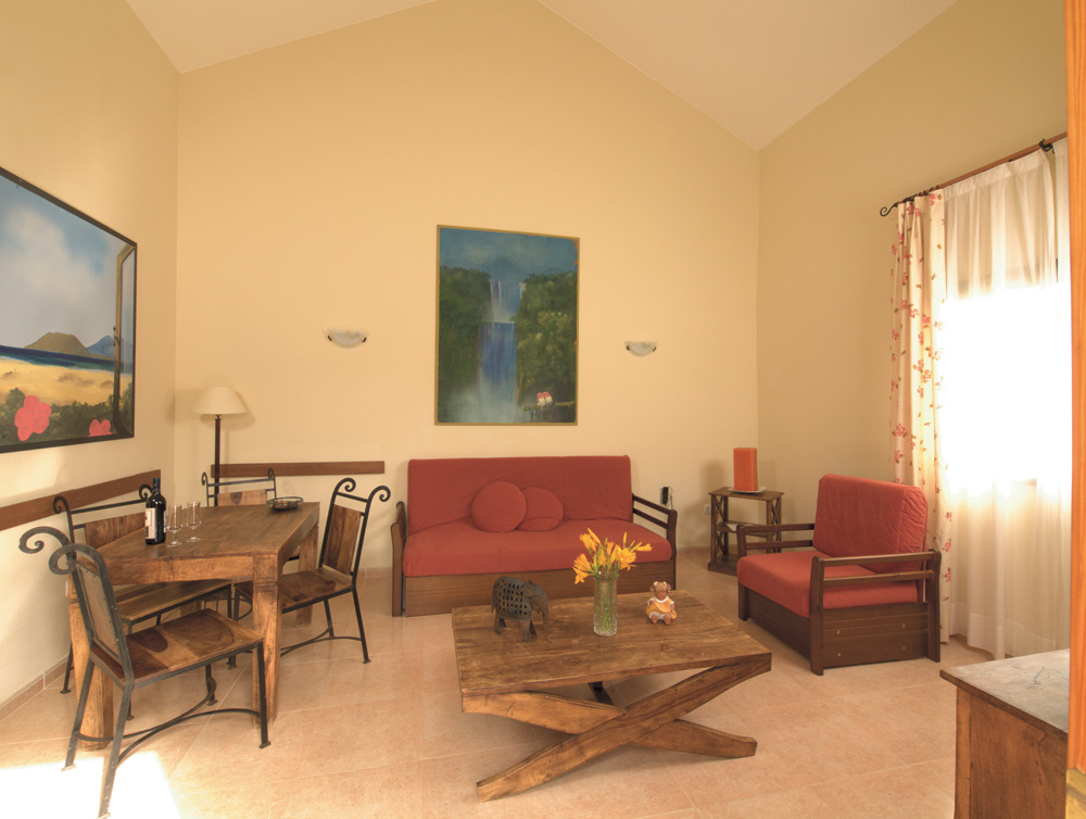 AP: koupelna/WC (vysoušeč vlasů), obývací místnost kombinovaná s kuchyňským koutem, oddělená ložnice (stropní ventilátor), TV/sat. za poplatek, trezor za poplatek, balkon nebo terasa.