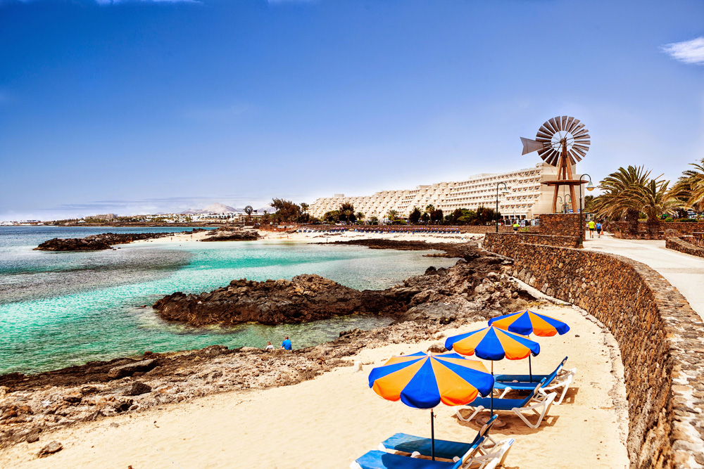 Písečná pláž El Jablillo jen přes promenádu, lehátka a slunečníky za poplatek. Známá pláž Playa de las Cucharas cca 10 minut chůze.