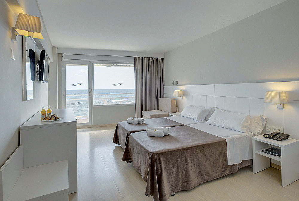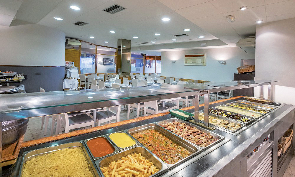 bohatý mezinárodní bufet; nápoje za poplatek; věčeře podávány v 250 m vzdáleném Hotelu Rosamar Es Blau