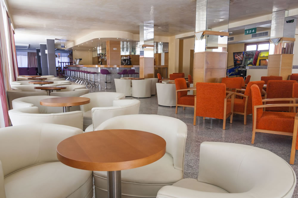 190 pokojů, 6 pater, vstupní hala s recepcí, výtah, restaurace, 2 bary, společenská místnost s TV/sat., terasa na slunění s lehátky a slunečníky zdarma.