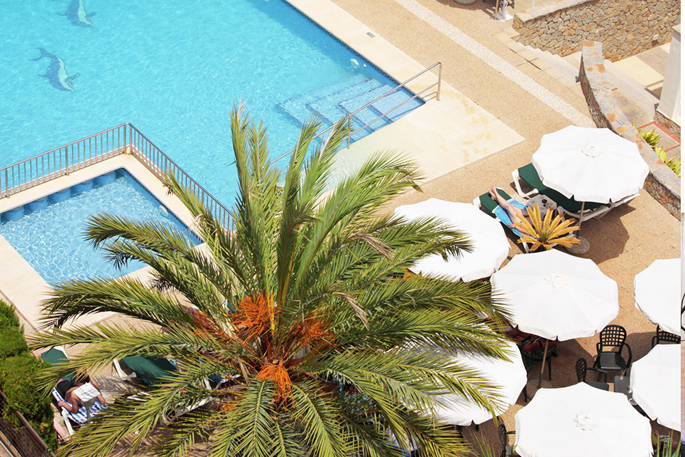 84 pokojů, 4 patra, vstupní hala s recepcí, výtah, restaurace, bar, bazén, bar u bazénu, terasa s lehátky a slunečníky zdarma.