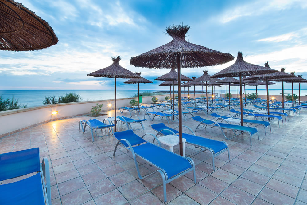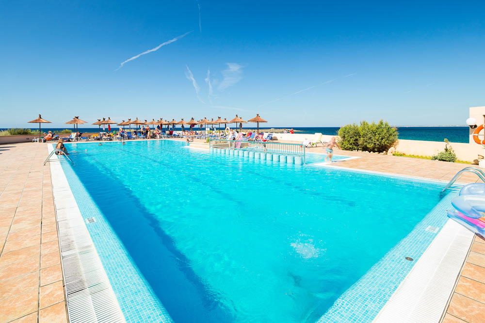 Malá přírodní písečnoblázková pláž s kamenitým vstupem do moře cca 500 m (pro vstup do moře doporučujeme boty do vody). Písečná pláž Es Trenc s průzračnou vodou a pozvolným vstupem do moře cca 1 km, lehátka a slunečníky za poplatek. Možnost koupání ze skal přímo u hotelu.