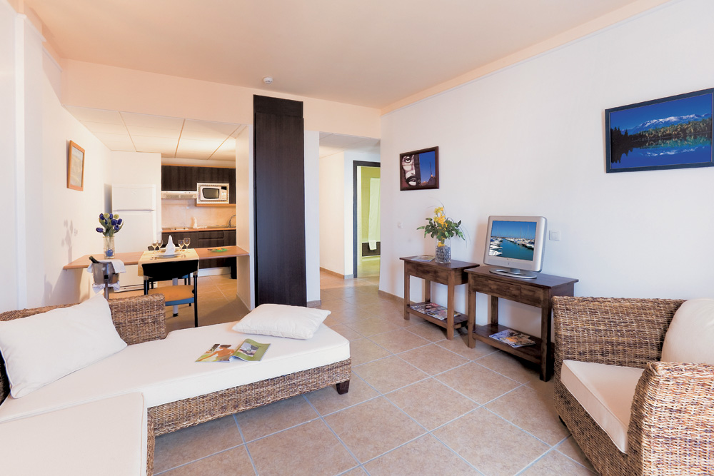 DR: koupelna/WC, vysoušeč vlasů, centrální klimatizace, telefon, TV/sat., minibar a trezor za poplatek, balkon nebo terasa. DRSV: viz DR, výhled na moře. Na vyžádání možnost prostornějšího rodinného pokoje (FR).