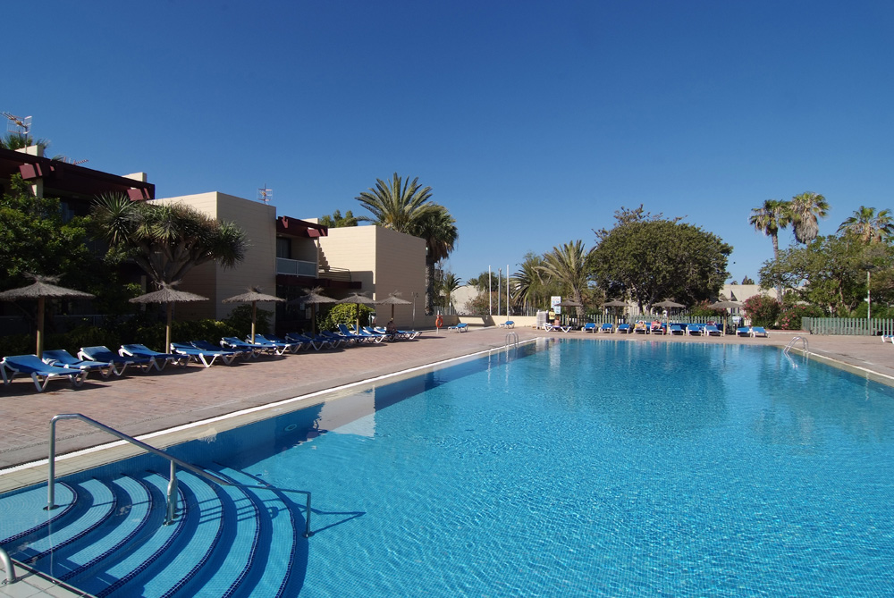 130 pokojů, několik dvoupatrových budov, vstupní hala s recepcí, restaurace, bar a konferenční sál. Venku bazén (možnost klimatizace/vyhřívání), bar, terasa se slunečníky a lehátky zdarma.