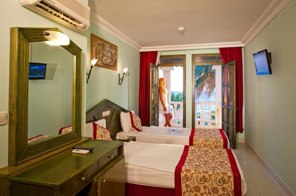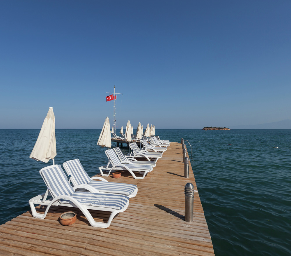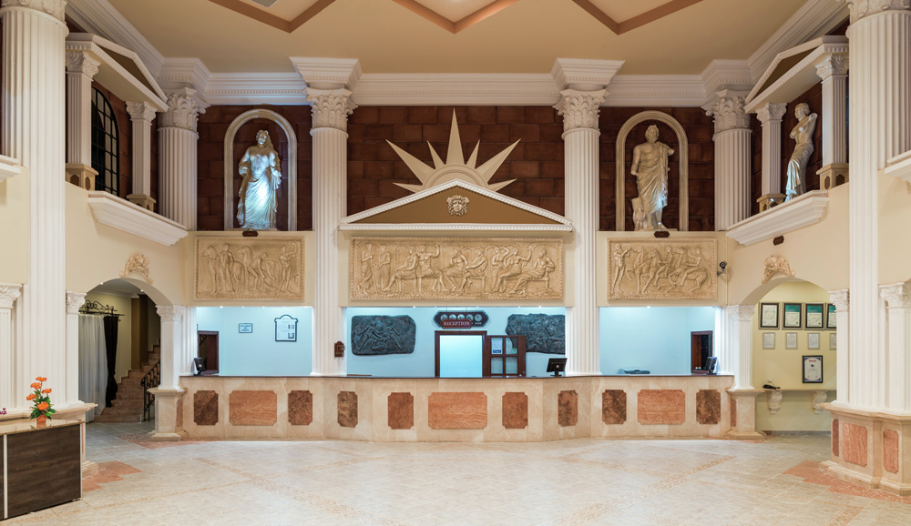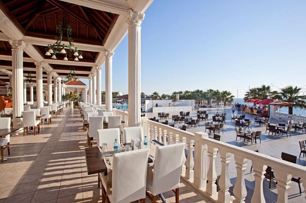 Vstupní hala s recepcí, směnárna, hlavní restaurace s venkovní terasou s výhledem na moře, 3 restaurace `a la carte (italská, rybí, turecká), bary, konferenční místnost, obchodní arkáda, 2 bazény s terasou na slunění, bazén se skluzavkami, lehátka se slunečníky a osuškami u bazénů zdarma.