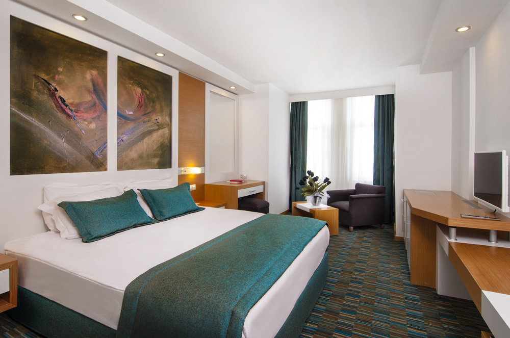 DRP/DR/DRSV: koupelna/WC, centrální klimatizace, vysoušeč vlasů, telefon, TV/sat., minibar a trezor za poplatek, wifi připojení k internetu, bez balkonu. FRSV: viz DR, prostornější, výhled na moře. FRC: viz DR, prostornější, ve vedlejší budově.