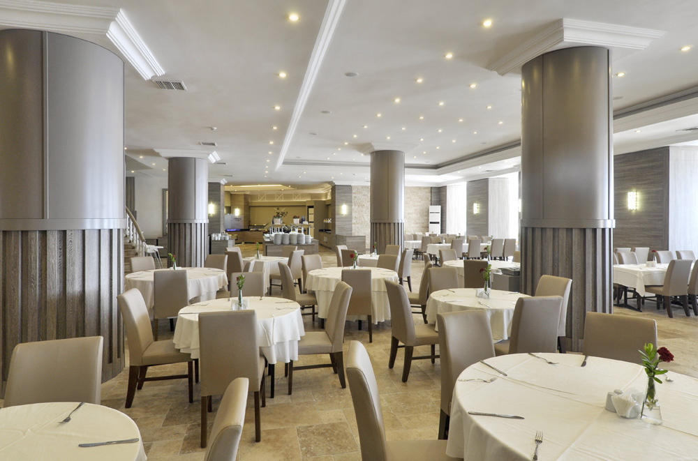 Vstupní hala s recepcí, směnárna, hlavní restaurace s terasou, bary, 2 restaurace á la carte, 3 bazény s terasou na slunění (jeden se skluzavkami), lehátky a slunečníky zdarma, obchodní arkáda, konferenční místnosti.