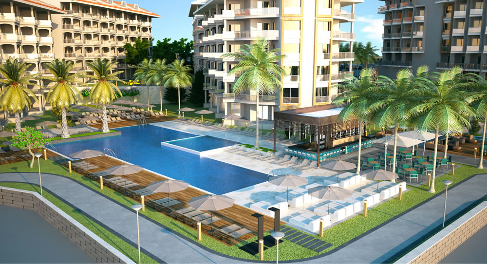 Vstupní hala s recepcí, směnárna, hlavní restaurace s venkovní terasou, 3 `a la carte restaurace (italská, mexická, turecká), 5 barů, 3 bazény (jeden se skluzavkami) s terasou na slunění, vnitřní bazén, obchodní arkáda, lehátka se slunečníky a osuškami u bazénů zdarma.