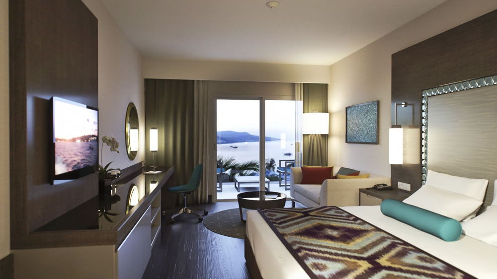 DRSVS: koupelna/WC, centrální klimatizace, vysoušeč vlasů, telefon, TV/sat., minibar, trezor za poplatek, set na přípravu kávy a čaje, balkon, nebo terasa, výhled na moře. SUSV: viz DR, dveřmi oddělena ložnice od obývací části. SU2SV: viz SUSV, 2 oddělené ložnice a obývací část.