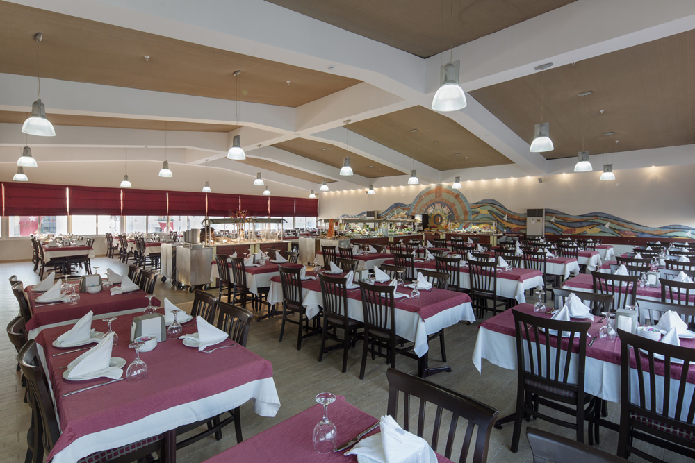Vstupní hala s recepcí, výtah, restaurace, několik barů, společenská místnost s TV/sat., wellness centrum, terasa na slunění, bazén s lehátky a slunečníky zdarma.