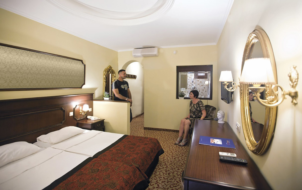 DR: koupelna/WC (vysoušeč vlasů) , TV/sat., klimatizace, telefon, trezor za poplatek, minibar, balkon. DRSS: viz DR, boční výhled na moře DRP: viz DR, méně výhodná poloha SUSV: viz DR,