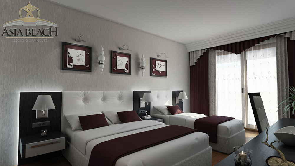 DR: koupelna/WC (vysoušeč vlasů), klimatizace/vyhřívání, telefon, TV/sat., minibar, set na přípravu kávy a čaje, balkon nebo terasa. DRP: viz DR, méně výhodná poloha, bez balkónu FR1: viz DR, prostornější FR2: viz DR, oddělená ložnice FRSV: viz FR2, výhled na moře