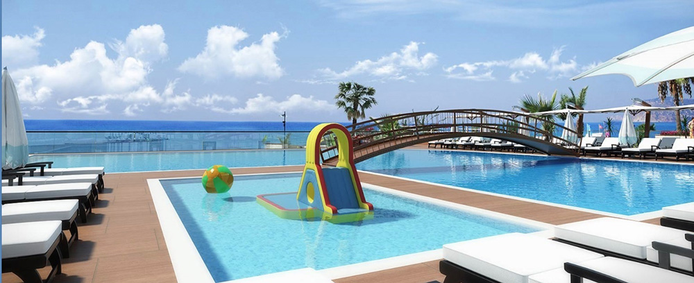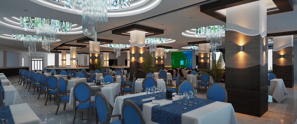 Vstupní hala s recepcí, hlavní restaurace, 2 restaurace á la carte, několik barů, konferenční místnosti, kino, kadeřnictví, internetová kavárna, menší nákupní arkáda, vnitřní bazén. Bazén s terasou na slunění, lehátka a slunečníky zdarma, 3 skluzavky, amfiteátr.