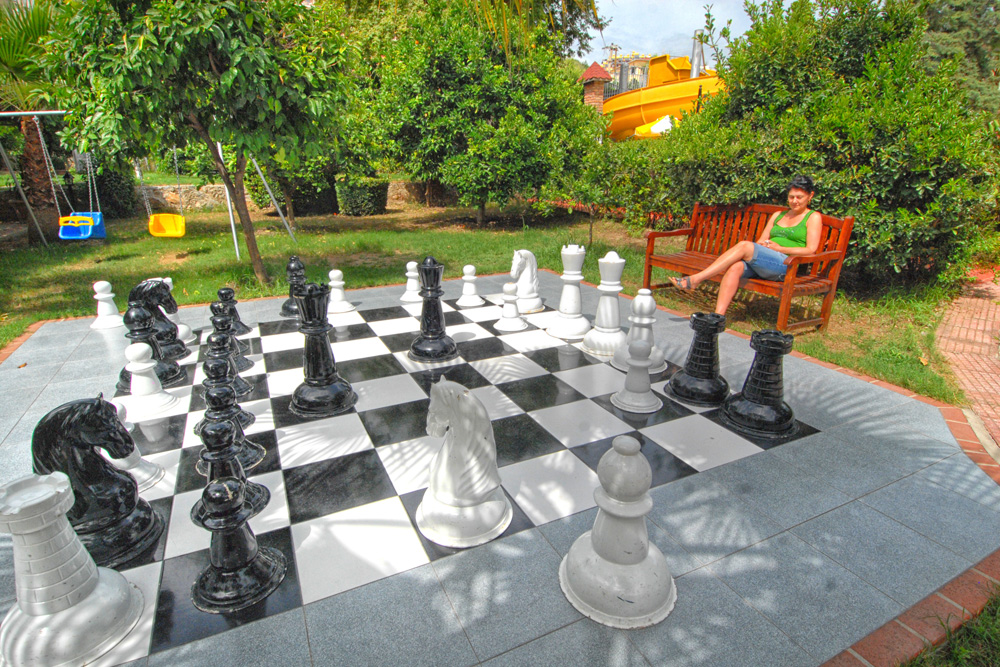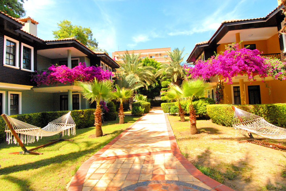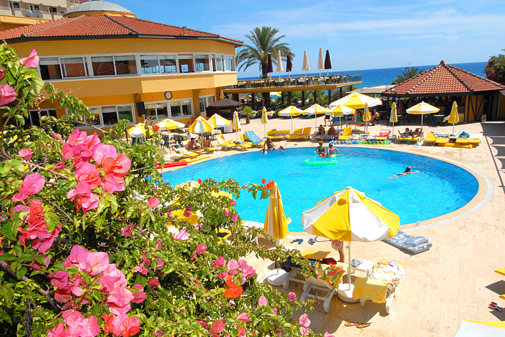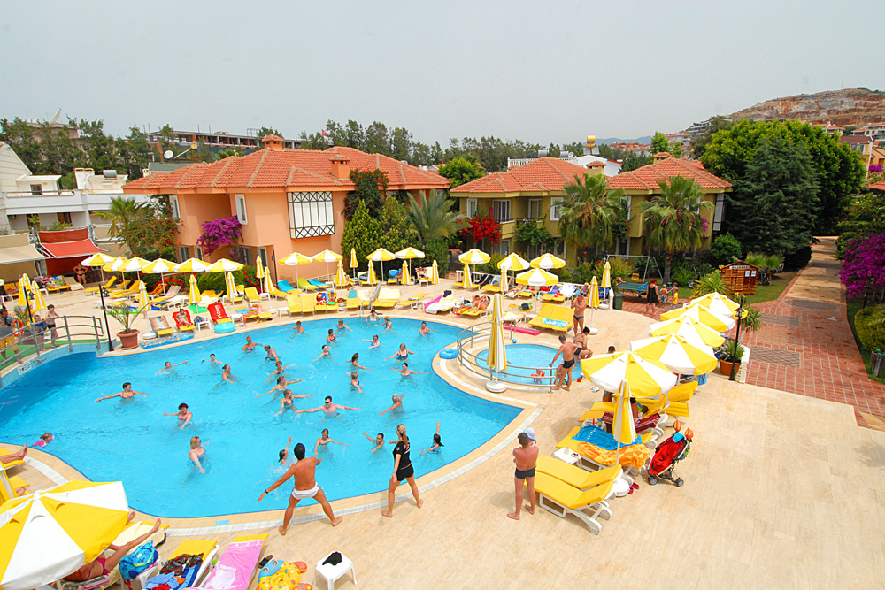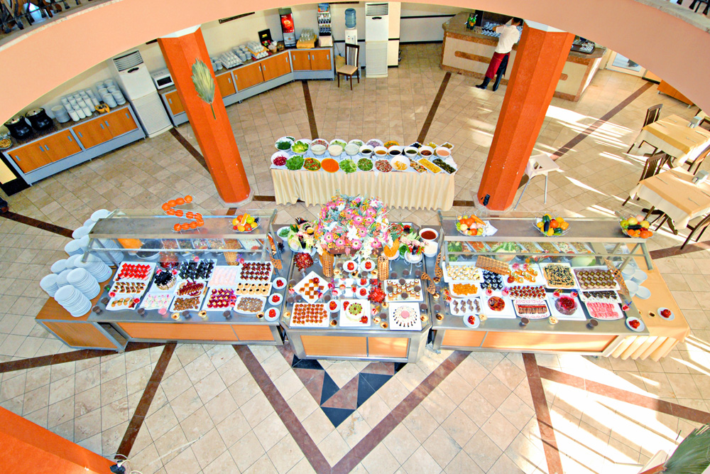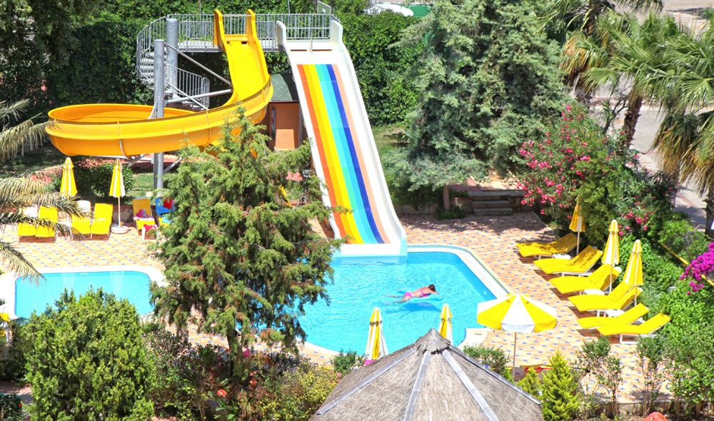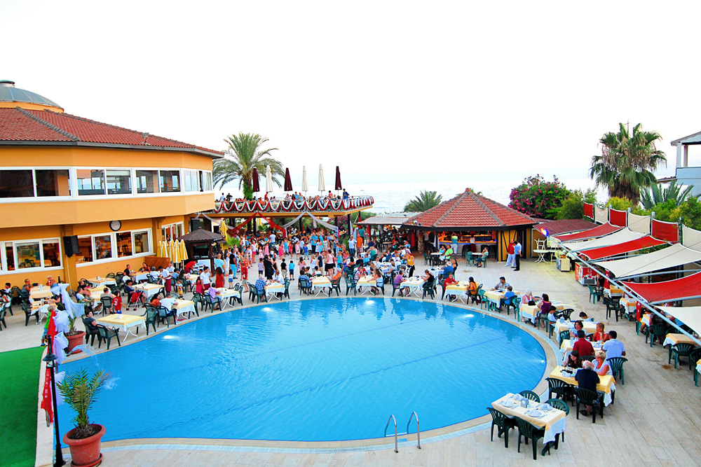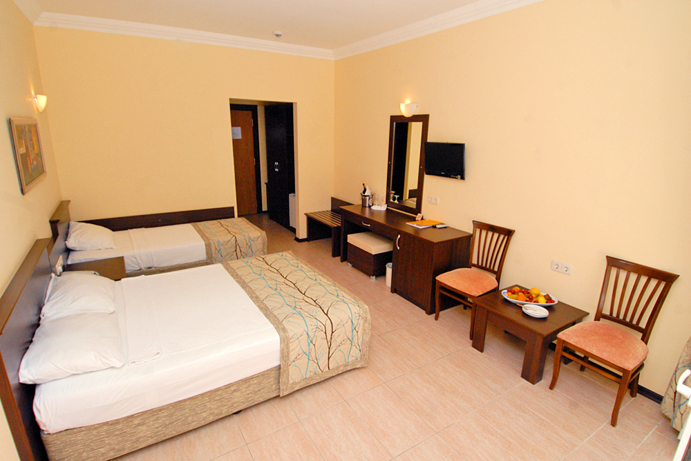 210 pokojů, hlavní budova a několik přilehlých budov v zahradě, vstupní hala s recepcí a směnárnou, výtah, hlavní restaurace, restaurace `a la carte, 3 bary, konferenční prostory, obchůdky, kadeřnictví, minimarket, 2 bazény (jeden se skluzavkou). Lehátka, slunečníky a matrace u bazénů zdarma.
