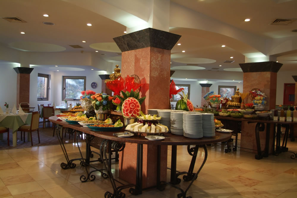 Vstupní hala s recepcí, výtah, trezor na recepci (za poplatek), hlavní restaurace, restaurace a la carte, 3 bary, obchod se suvenýry, vnitřní bazén. V zahradě bazény, terasa na slunění s lehátky a slunečníky zdarma.