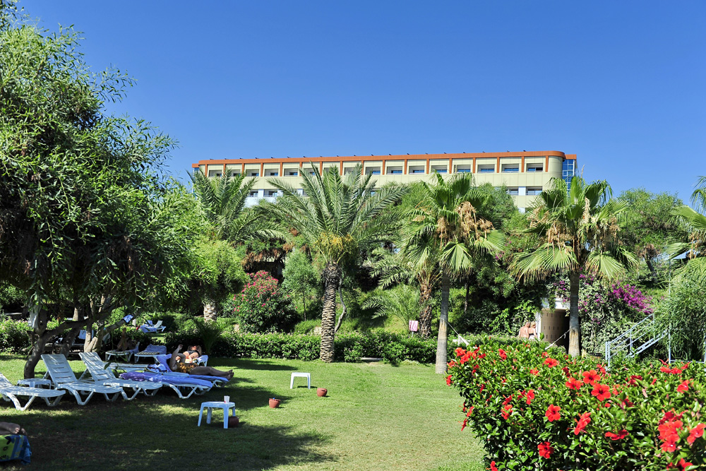 172 pokojů, vstupní hala s recepcí, hlavní restaurace, á la carte restaurace, 4 bary, obchodní arkáda, kadeřnictví, konferenční místnost, společenská místnost s TV/sat., vnitřní bazén. V zahradě 2 venkovní bazény (jeden se skluzavkami), terasa na slunění s lehátky, slunečníky a osušky zdarma.