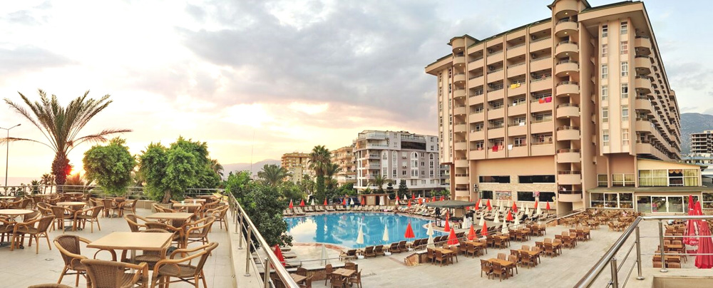 Cca 8 km od centra města Alanya. Letiště v Antalyi cca 130 km (150 minut), Gazipasa cca 35 km (45 minut).