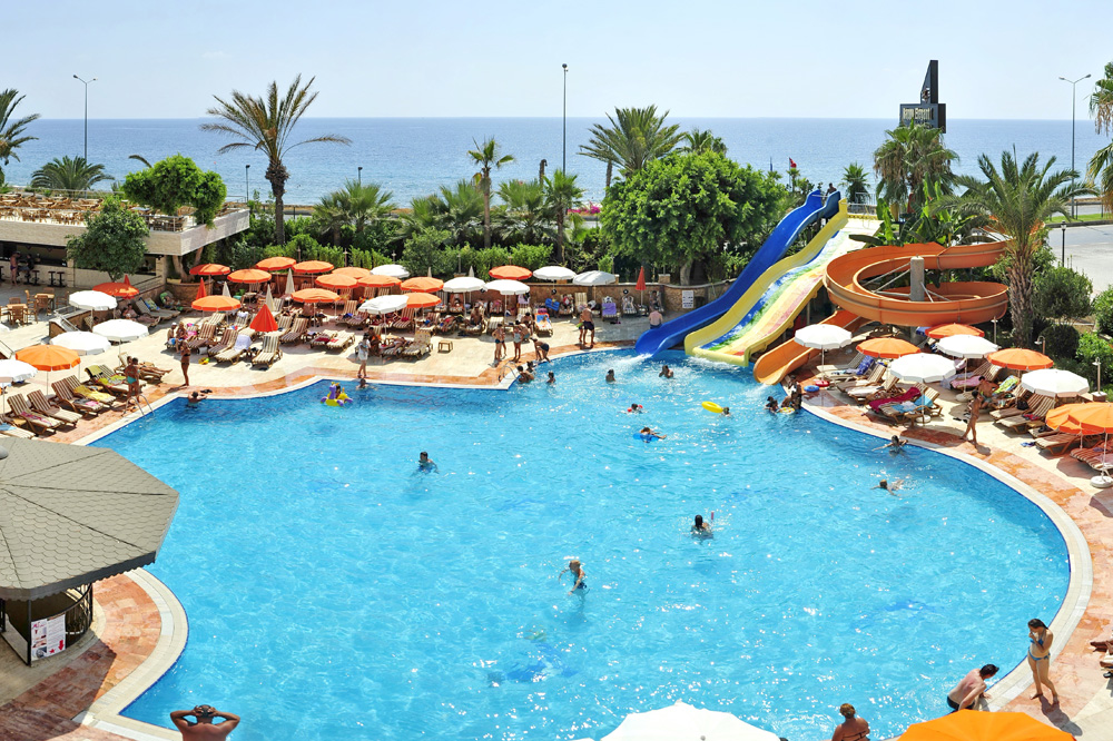 338 pokojů, vstupní hala s recepcí, výtah, hlavní restaurace, `a la carte restaurace, 5 barů, obchodní arkáda, kadeřnictví, 3 konferenční místnosti. V zahradě bazén se skluzavkami, terasa na slunění s lehátky a slunečníky zdarma.