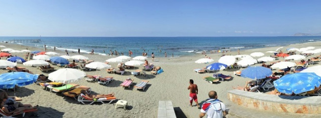 Písečno-oblázková pláž cca 50 m (oddělená pobřežní komunikací, přístup privátním podchodem), molo. Při vstupu do vody kameny, doporučujeme boty do vody. Lehátka a slunečníky zdarma. Bar na pláži zdarma. Osušky za poplatek (karta za deposit na recepci).