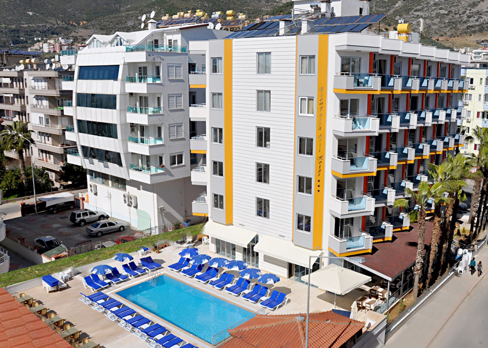 Cca 1 km od centra města Alanya. Letiště v Antalyi cca 125 km (150 minut), Gazipasa cca 40 km (45 minut). Nákupní možnosti v okolí hotelu.