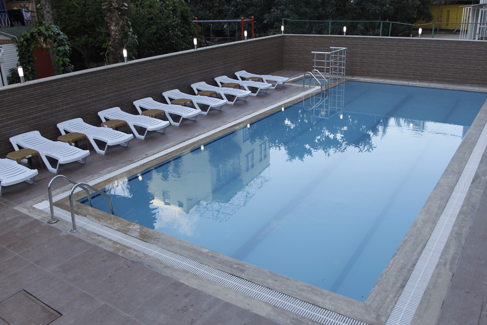 Vstupní hala s recepcí, výtah, restaurace, 2 bary, společenská místnost s TV/sat., bazén s lehátky a slunečníky zdarma
