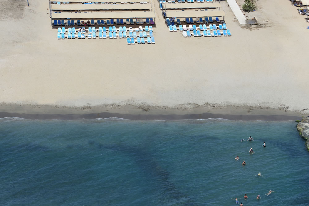 Písečná pláž oddělená od hotelu promenádou. Lehátka a slunečníky zdarma. Bar na pláži zdarma.