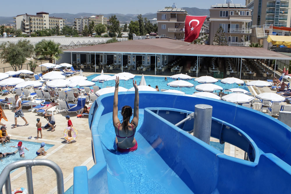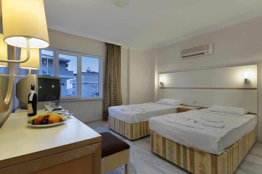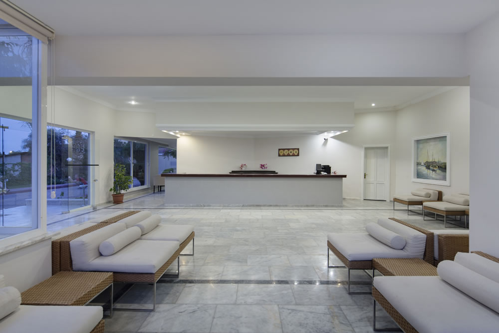 350 pokojů, vstupní hala s recepcí, výtah, hlavní restaurace, 2 `a la carte restaurace, 2 bary, obchody, kadeřnictví. V zahradě 2 bazény (jeden se skluzavkami), terasa na slunění s lehátky a slunečníky zdarma.