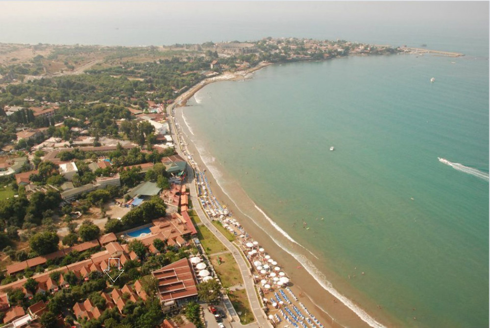Rozlehlý komplex bungalovů u písečné pláže. Nákupní možnosti v okolí hotelu. Historické centrum letoviska Side cca 500 m. Letiště v Antalyi cca 64 km (70 minut), Gazipasa cca 105 km (90 minut).
