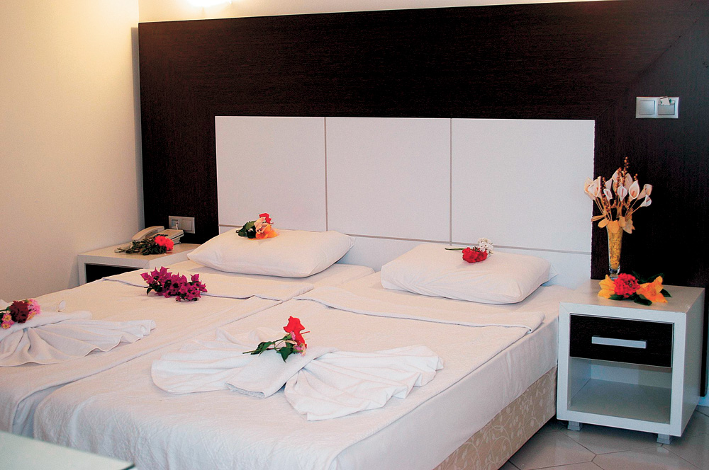 DR: sprcha/WC, vysoušeč vlasů, klimatizace, telefon, TV/sat., trezor (za poplatek), minibar (za poplatek) a balkon. DRP: viz DR, méně výhodná poloha FR: viz DR, ve vedlejší budově, oddělená ložnice