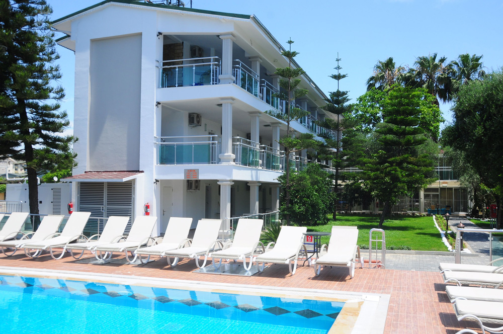 V rozlehlé zahradě cca 700 m od centra Side s množstvím obchodů a restaurací. Letiště v Antalyi cca 65 km (70 minut), Gazipasa cca 107 km (90 minut).
