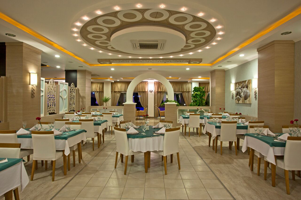 Vstupní hala s recepcí, hlavní restaurace a 2 restaurace á la carte (turecká a rybí), několik barů, menší obchodní arkáda, konferenční místnost, 2 bazény (1 z nich se skluzavkami), terasa na slunění, lehátka a slunečníky u bazénu zdarma, osušky a podložky za poplatek.