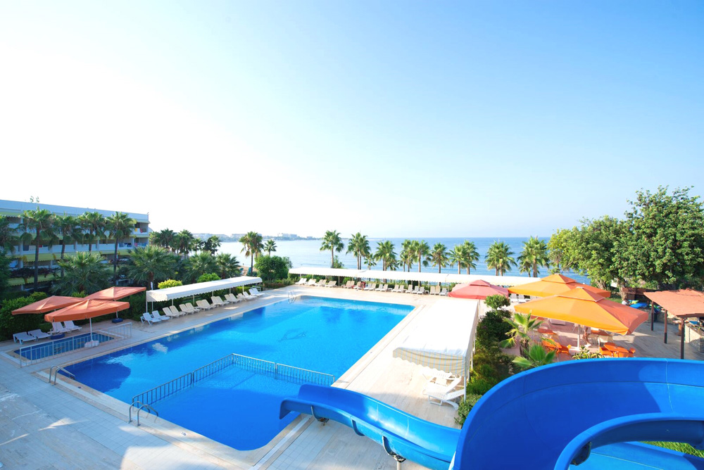 Přímo u písečné pláže, cca 22 km od Alanye. Letiště v Antalyi cca 108 km (120 minut), Gazipasa 65 km (60 minut).