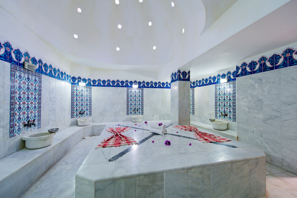 Vstupní hala s recepcí, restaurace s venkovní terasou, několik barů, společenská místnost s TV/sat., bazén se skluzavkou, terasa na slunění s lehátky a slunečníky zdarma.