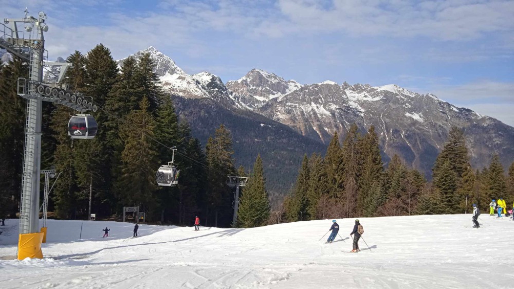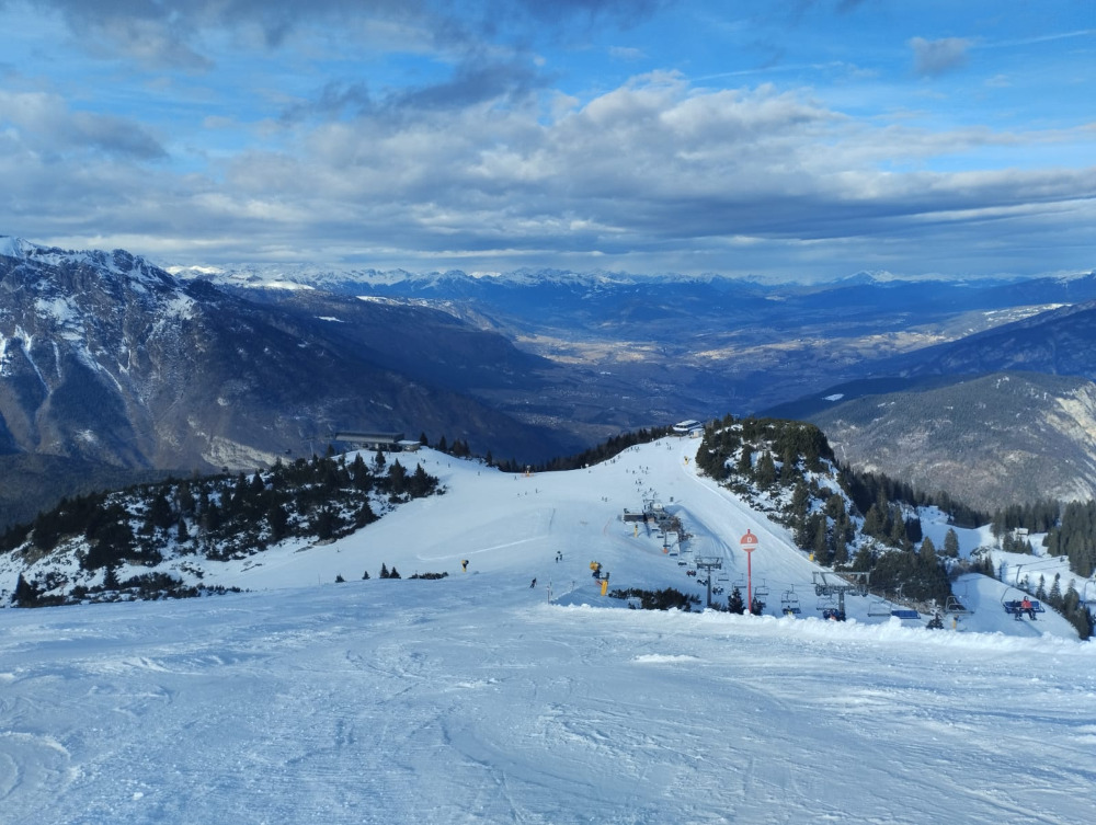 Během posledních 3 dnů v oblasti lyžařského střediska Paganella nasněžilo zhruba 5 cm nového sněhu. Nyní leží v údolí 45 cm a na vrcholech asi 95 cm sněhu. Teploty se pohybují mezi 7 a -5 °C.